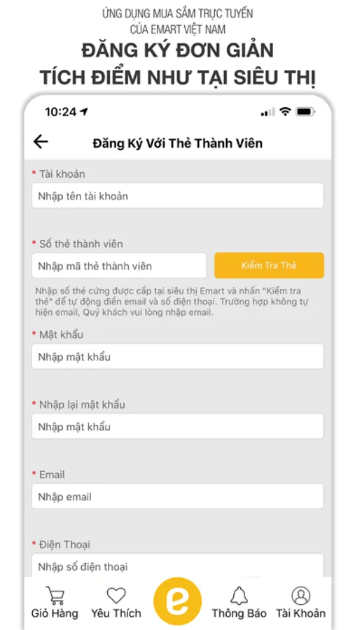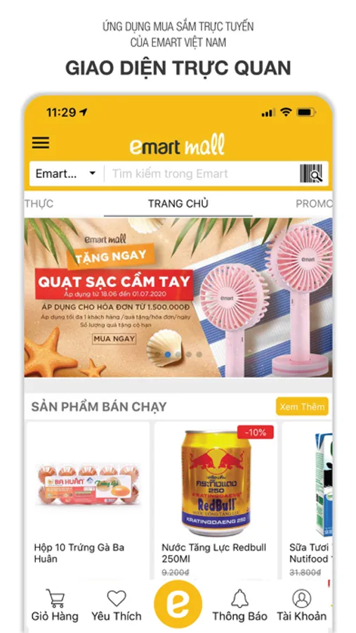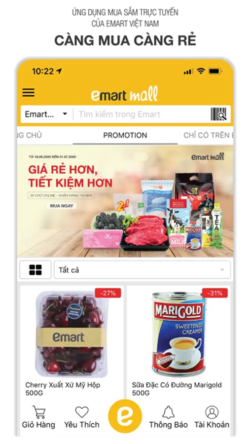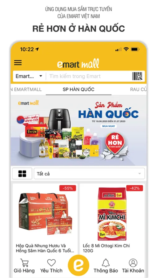 Ứng dụng cho phép mua sắm các sản phẩm của siêu thị Emart Hàn Quốc.