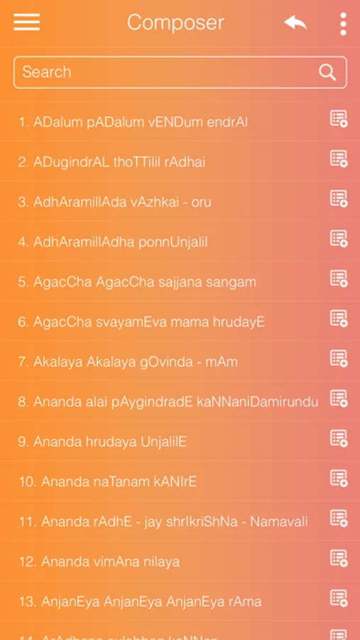 * Search for Carnatic devotional song lyrics in a few seconds.