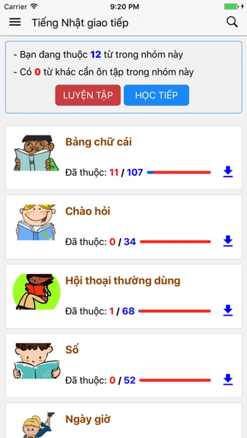 Với Hoc Tieng Nhat Giao Tiep bạn có thể học offline bằng cách tải bài học về trước