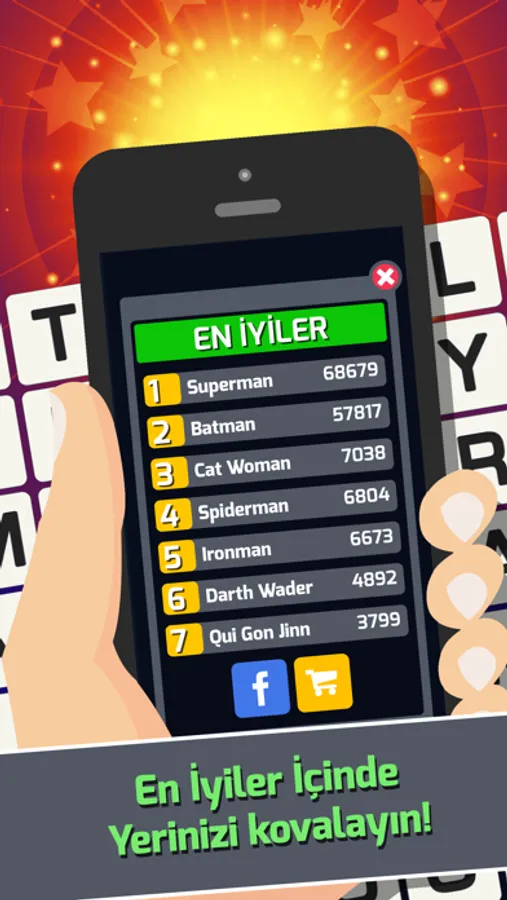 Düşen harfler arasında adeta kelime avına çık.Harfleri kullanarak kelime oluşturma senin için çocuk oyunu olacak. Başarılı bir kelime üretici olarak kazandığın puanları arkadaşlarınla paylaş.
