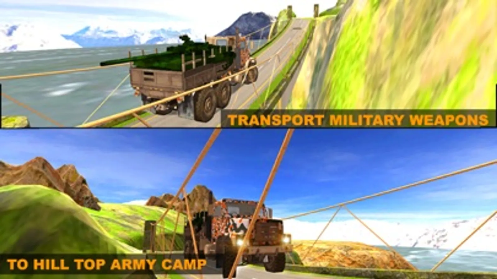 The Off-road Army Truck Driver Simulator 2017 Drive on the bumpy road in the mountain, you need to control the hill climb Off-road Army Truck Driver Simulator 2017 like monster truck heavy wheel carefully to travel over the meandering road.Challenging drive duty, limited time, different hurdles and mountain are the key task for a military officer driver and deliver goods , army vehicles from small base camp to main army check post camp.