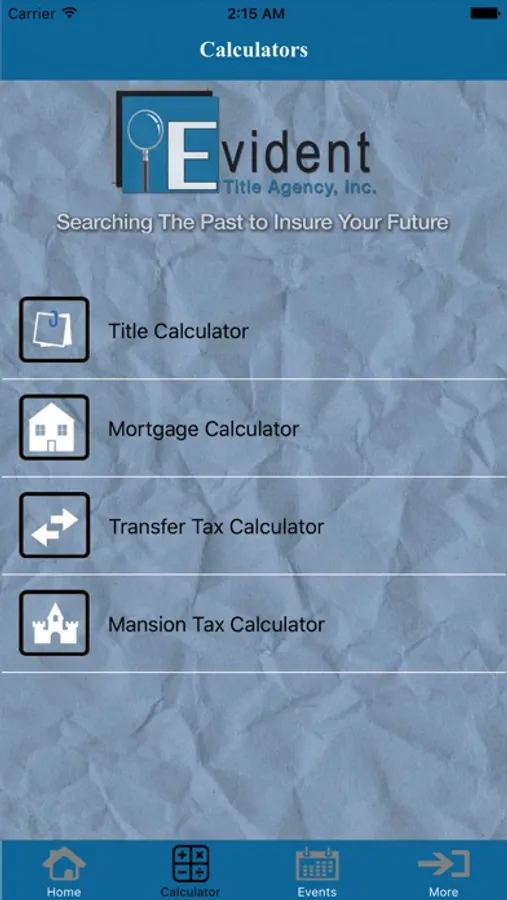 Evident title agency is proud to provide this comprehensive app for Realtors, brokers, and lenders. Our app allows you to calculate title insurance costs, mortgage payments and transfer tax amounts.