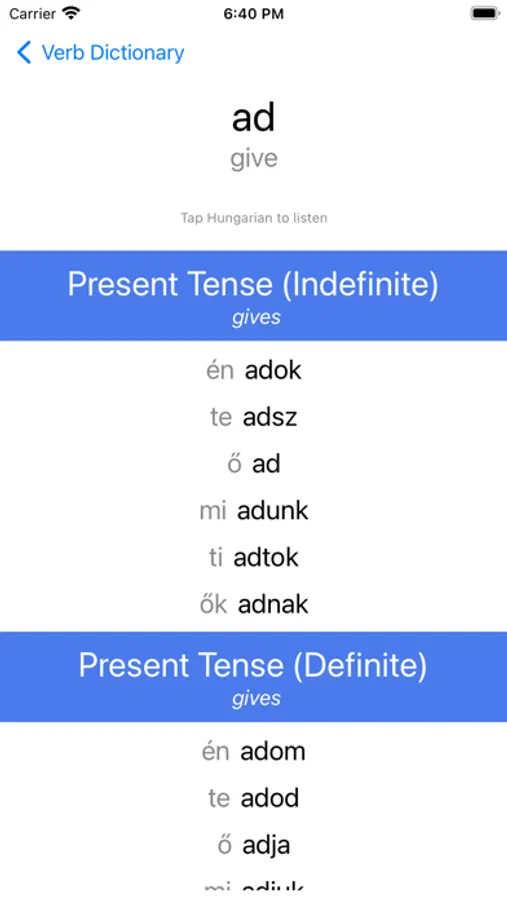 Learn and practise Hungarian verbs with this interactive verb reference and drill tool. With over 120 core verbs, Hungarian Verb Blitz is a clear and effective way to refresh and revise your grammar skills, as well as expand your everyday vocabulary with some high frequency words.