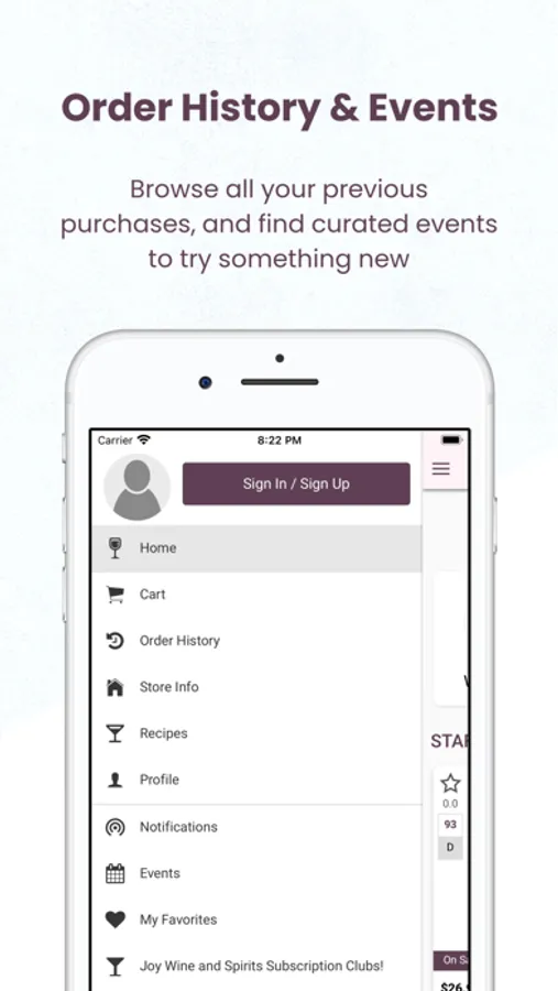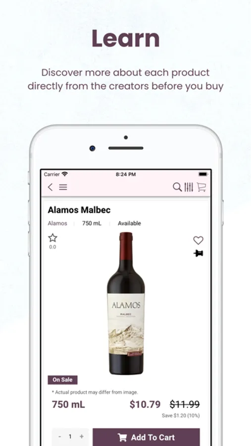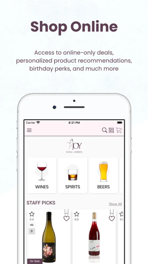 With the App you can browse for the wines & spirits available in the store, and also order a delivery or pickup.