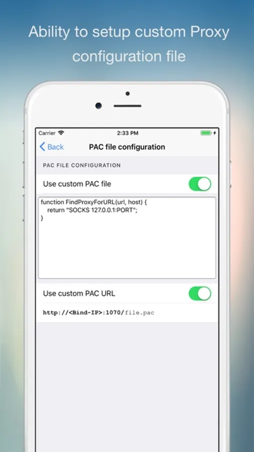 - Provides a local URL for a Proxy Auto-Configuration (PAC) file (for WiFi proxy autoconfiguration)
