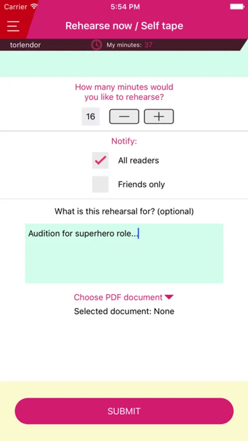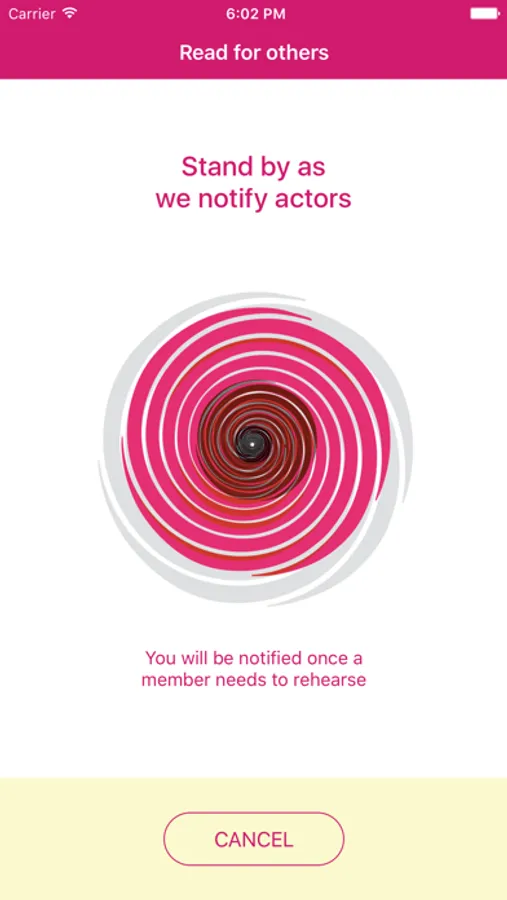 When an actor wants to read for others to earn minutes of their own (which can also be cashed in for prizes, we will get there) they simply open the ‘read for others’ icon in the menu bar, set their availability time and be alerted when an actor wants to rehearse.