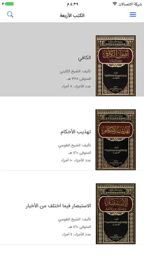 هذا التطبيق يشتمل على الكتب الأربعة والتي تعرف بالأصول الأربعة عند الشيعة، وهي: