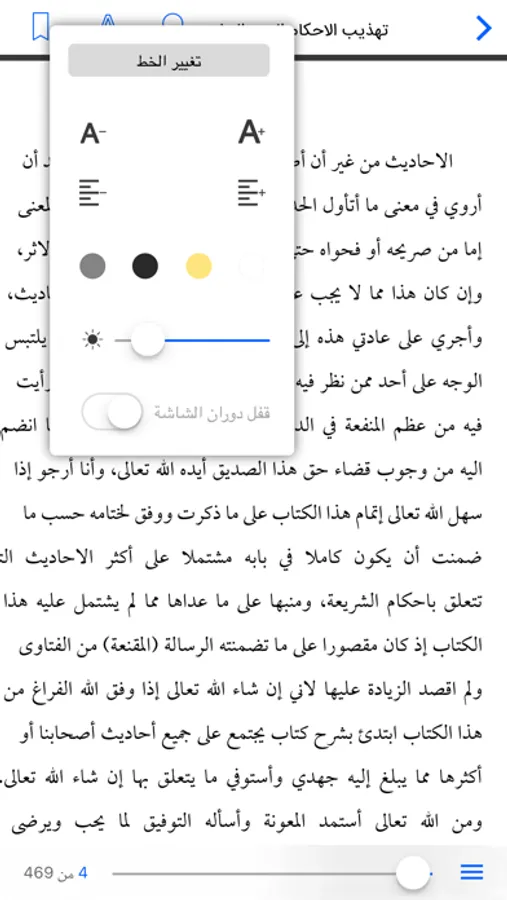 يتميز التطبيق أنه يقدم طريقة عرض مريحة للقارئ، حيث يمكنه التحكم بحجم الخط ونوعه، وتغيير فاصلة الأسطر ودرجة الاضاءة، واختيار الاضاءة الليلية لتسهيل القراءة و...