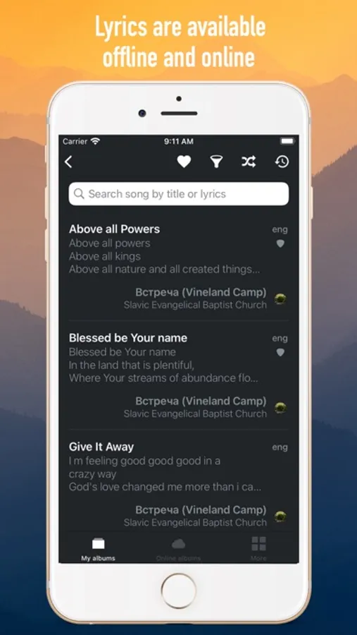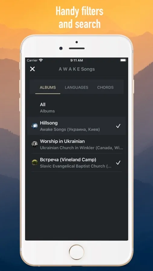 You can browse songs and albums online, or download an album to use it without internet access. You can use Awake Songs anywhere: at church, at home, in the camp, at the training, on the trip.