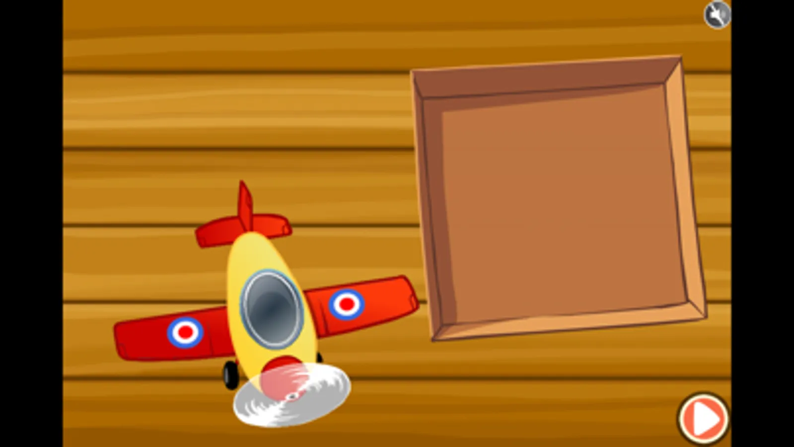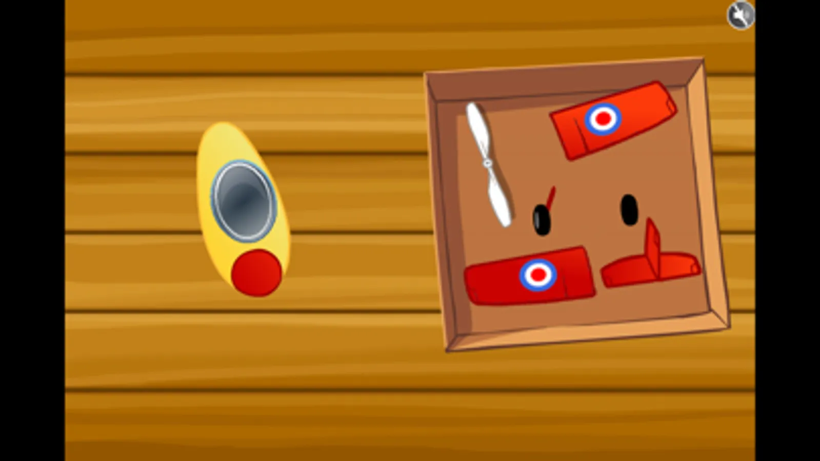 The child simply drag the airplane part in the right of the screen to the correcte place in the left of the screen. If the airplane part is correctly placed, can be heard a reward sound.