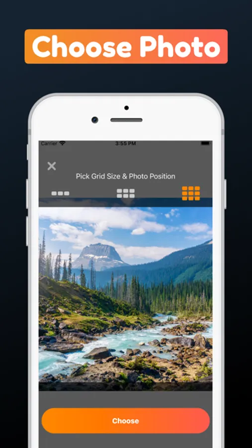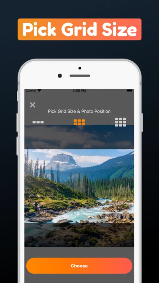 Just upload a photo, Choose grid size (1x3, 2x3, 3x3) and Share!