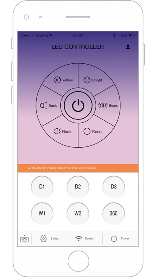 SM Signal是基于蓝牙技术开发的一款控制汽车改装指定灯具的程序,在连接匹配蓝牙灯具成功后,可以实现对长条灯、工作灯、驾驶灯、警示灯、旋转灯、氛围灯等的控制。本应用可实现的功能有:控制开关、对光型、色温、亮度、频闪、警示灯频闪、旋转方向及速度等进行调节控制;
