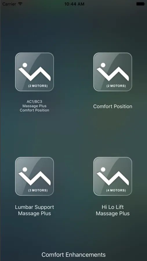 The Comfort Enhancements application allows you to operate your motion bed from your smartphone or tablet when connected to Bluetooth. The application also allows you to set an alarm to wake you up.