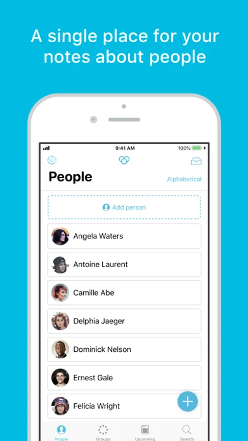 It's your single, trusted place for the important details about people in your life. Store things like people's family members’ names, how you met them, your last conversation, their work details, and more. Also add freeform notes about anything else – from gift ideas, to someone's favorite wine, to an important project or goal they’re working on.