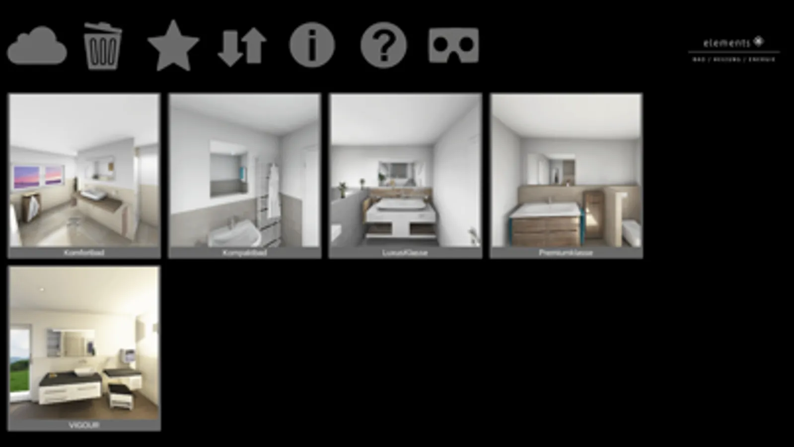 Badplanungen präsentieren in einer neuen Dimension! ELEMENTS 360 steht für das aktive Bad-Erlebnis in 3D. Ihre Kunden gehen auf virtuelle Entdeckungstour durch ihr künftiges Traumbad. Mit dieser innovativen APP sorgen Sie für beeindruckende Momente im Kundengespräch und erzeugen nachhaltigen Eindruck bei Kunden. ELEMENTS ist der einfachste Weg zum neuen Bad – und mit ELEMENTS 360 gleichzeitig der Emotionalste.