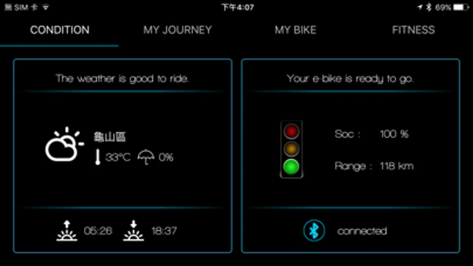 The BESV SPORT App offers the weather and e-bike system conditions and many other features. It also comes with fitness functions such as heart rate and calorie burn calculators to help mountain bikers review their training progress.