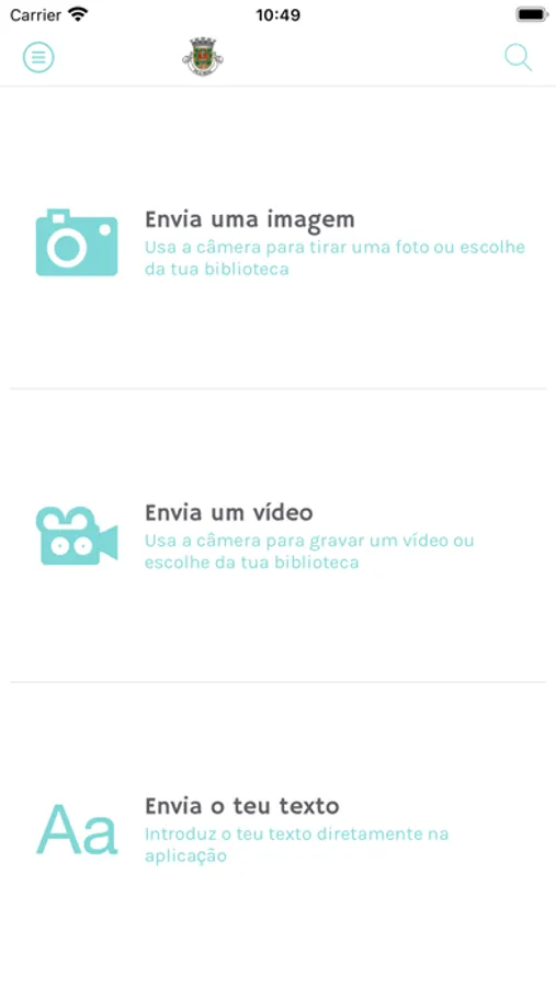 Pode participar qualquer ocorrência ao Município com o envio de fotos, videos ou comentários.