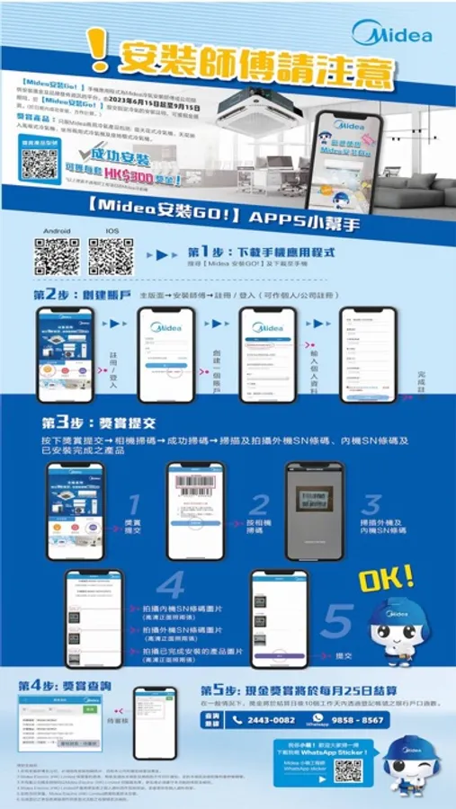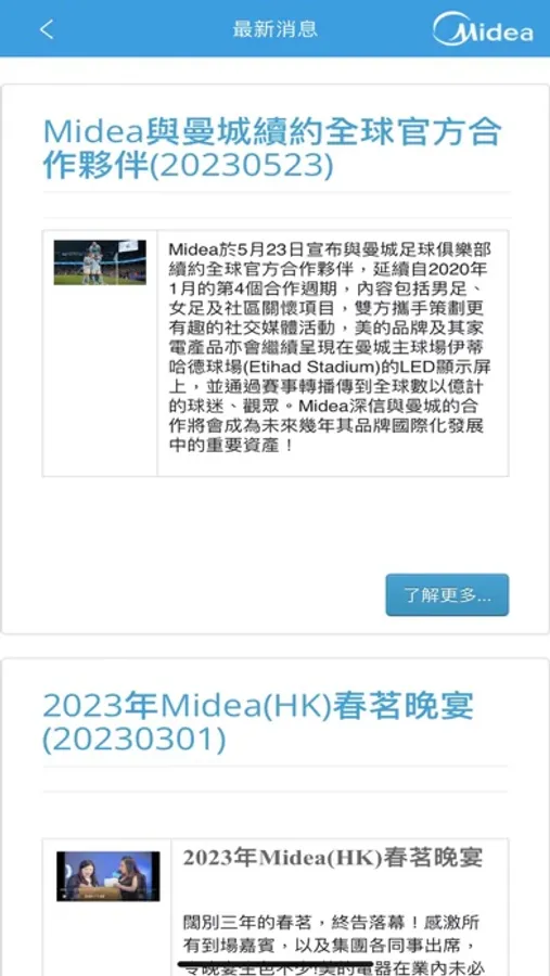 Midea has officially developed its Hong Kong business in 1986. Today, it has expanded its business from the sale of air-conditioning products to other household appliances retailing and expects to bring Midea more diversified products to the Hong Kong market gradually.