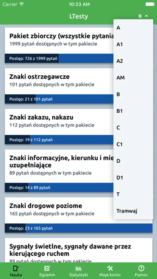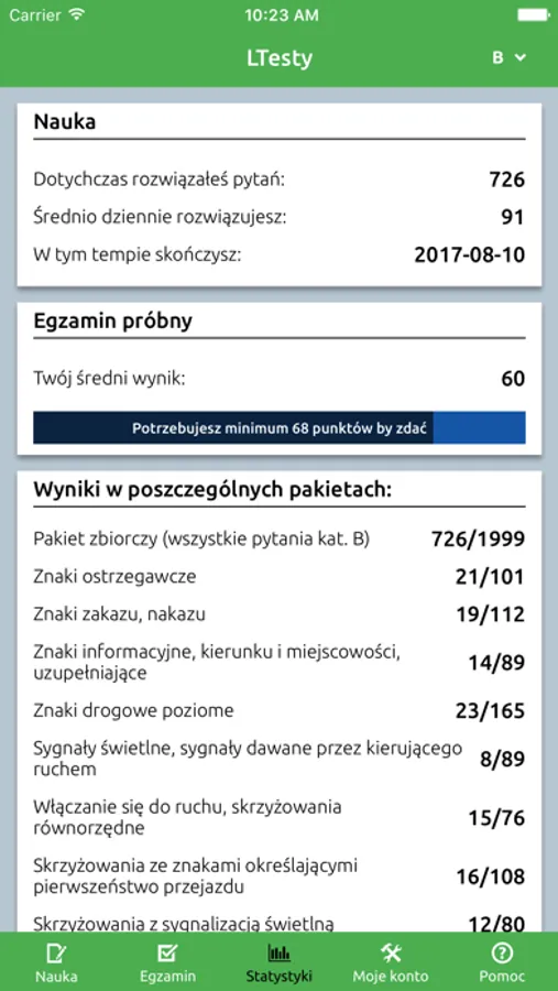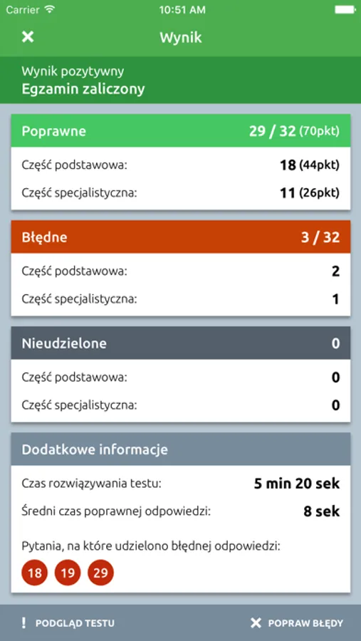 - STATYSTYKI - wyniki i raporty Twoich testów, które pozwolą na efektywniejszą i szybszą naukę, powrót do błędnych odpowiedzi, ponowne rozwiązanie najtrudniejszych pytań.