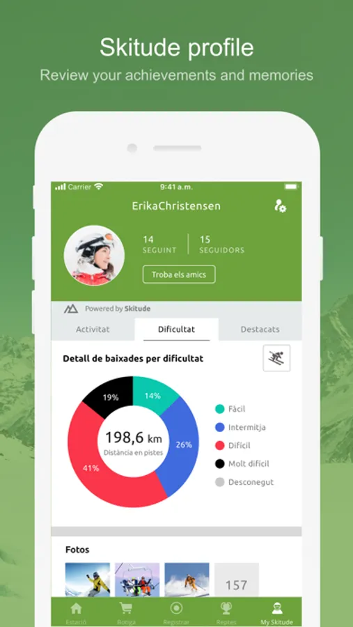 The App offers a range of features designed to optimize your experience before, during and after your trip. It’s very simple, plan your getaway and get real time updates on slope conditions. Set up your Skitude profile and track your activities on the slopes to get detailed stats about all your activities. And that’s not all, take part in challenges competing with the whole community, to be in with a chance of winning incredible prizes.