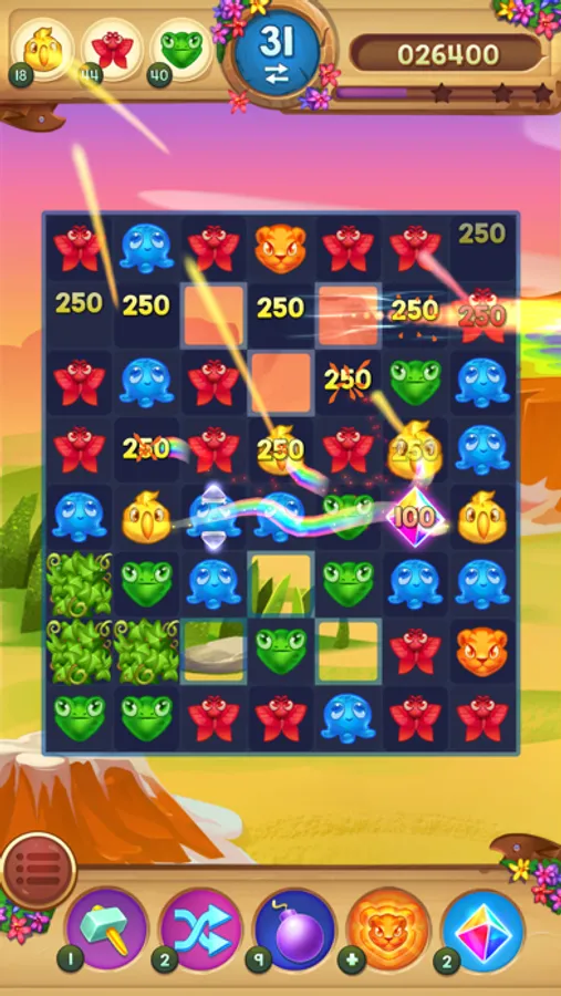 Animal Drop Safari features excellent replayability! Super high scores and exciting adventures await the attentive explorer. Connect your power ups to set off incredible combos: crash, boom, bang! Try to get a blitz going when you complete a level to score mega points: splash! Can you get three stars?