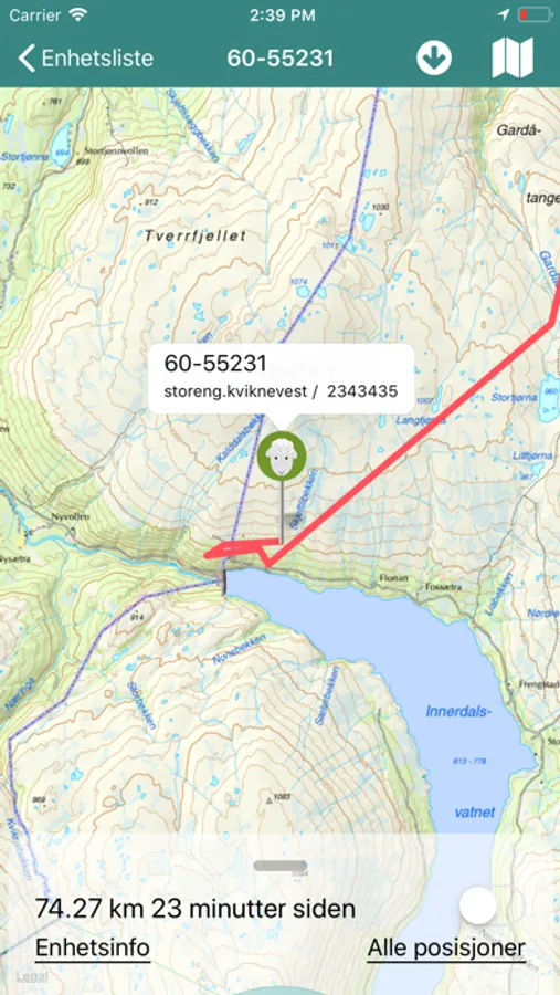 App developed for tracking with Findmy AS Satellite Tracking Technology.