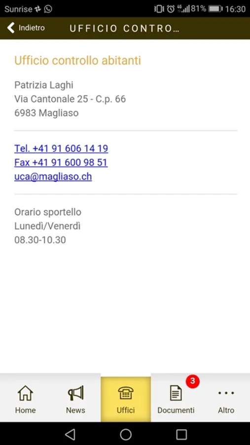 Utilizzando questa applicazione potrete consultare le seguenti sezioni: