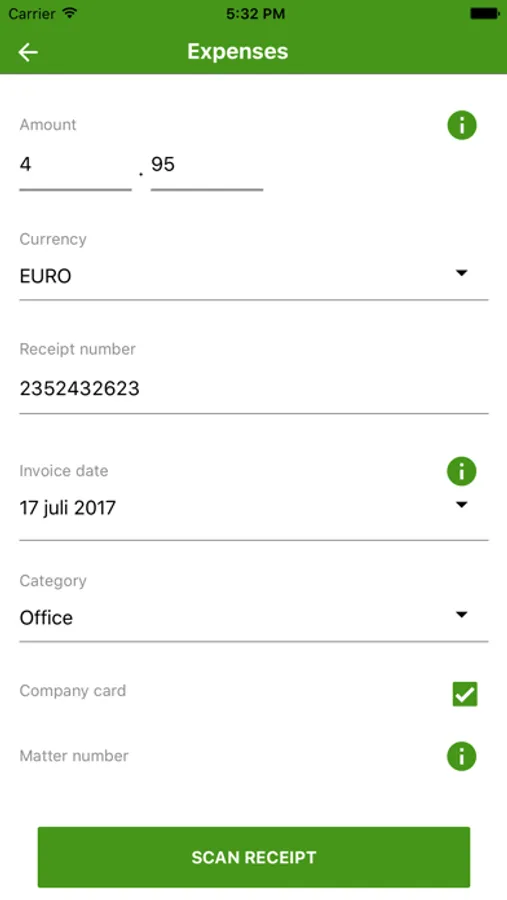 App voor het indienen van declaraties, creditcardstukken en km-vergoeding. Neem een foto van de bon of leg kilometers vast. Niets meer vergeten of kwijtraken. Details vult u in als het u schikt. Nog 1 klik en het administratieproces start.