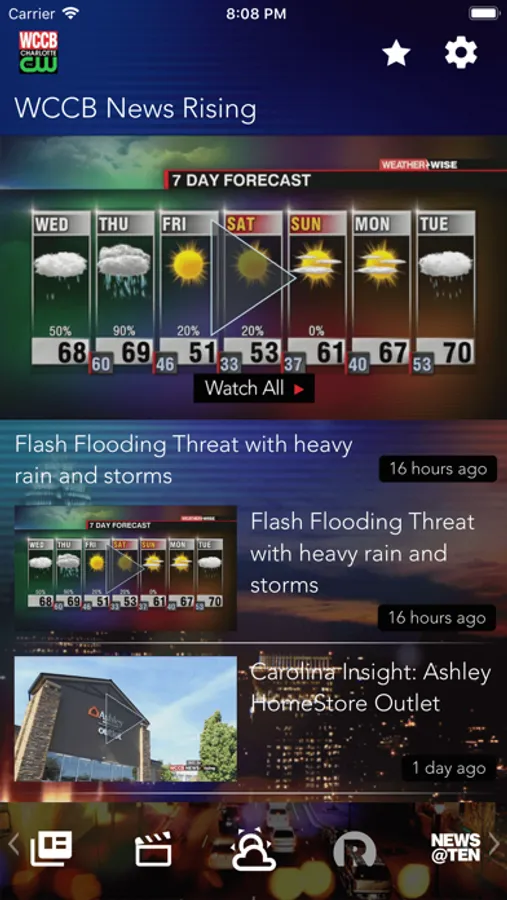No one knows Charlotte better than WCCB Charlotte’s CW. Our FREE app will keep you connected to Charlotte and its surrounding areas by providing you with the latest in local news, weather, sports, entertainment, and much more. You can stay connected to our morning show by checking out the Rising section and get your entertainment news on the Edge section. Get daily weather updates and see the 7-day forecast in the Weather section. Be sure to watch your favorite WCCB- TV shows live in the Watch Live section. Our morning show, WCCB News Rising, airs Monday-Friday from 4:30am-9am. WCCB News @ TEN airs each night at 10pm. WCCB News EDGE airs Monday-Friday from 10:30pm-11pm. We also air WCCB News @ SIX at 6pm on Saturdays and Sundays. Our sports show, Got Game, airs Sunday nights at 10:30pm.