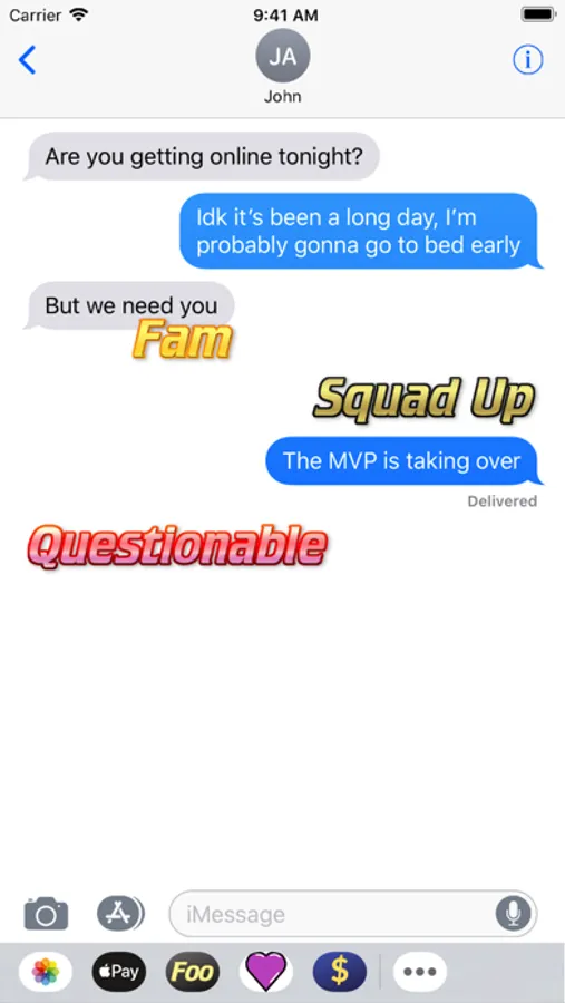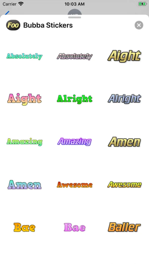 Enhance any conversation with Bubba Stickers! Drag and drop on speech bubbles, photos, or other stickers or send as emojis! You can also scale and rotate them! This pack contains over 350 stickers.