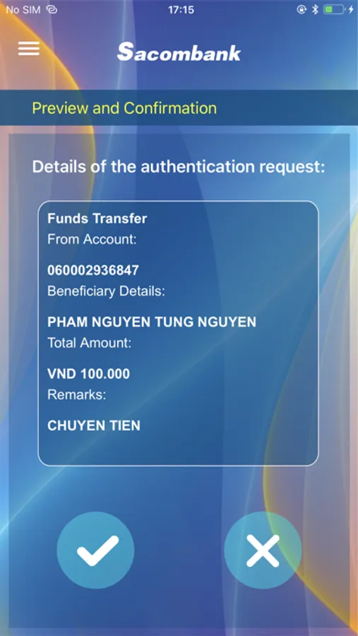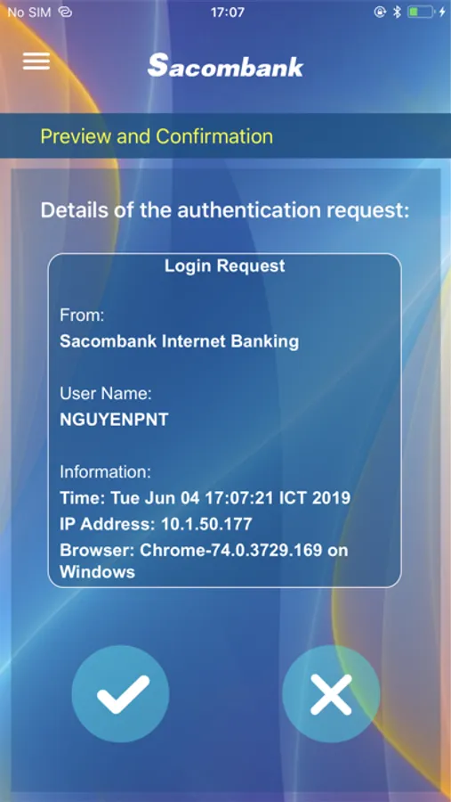 • Approve your Sacombank ebanking’s transactions (mConnected mode)