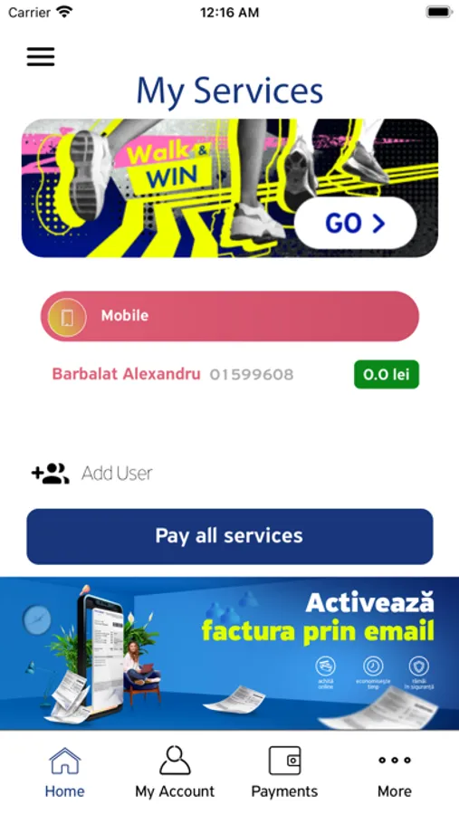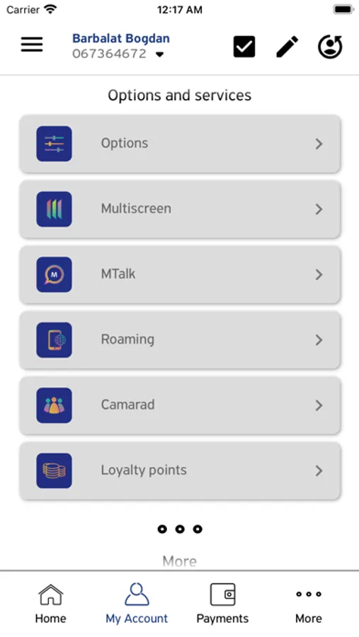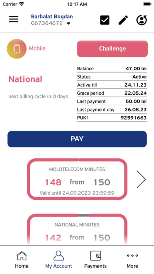 • Opportunity to pay another Moldtelecom account