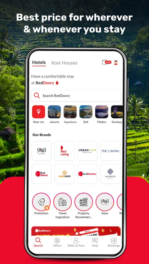 Experience the RedDoorz App and unlock a world of exclusive benefits! Enjoy incredible discounts of up to 25% on your first booking and join our loyalty program, RedClub, to elevate your stay and booking experience. With a range of exceptional brands including RedDoorz, RedLiving, Urbanview, Sans, and KoolKost, we provide the ultimate hotel booking experience.