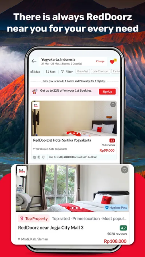 Download the RedDoorz App now to book on 3000+ properties across Indonesia and the Philippines and gain access to an extensive selection of affordable hotels and homestays.