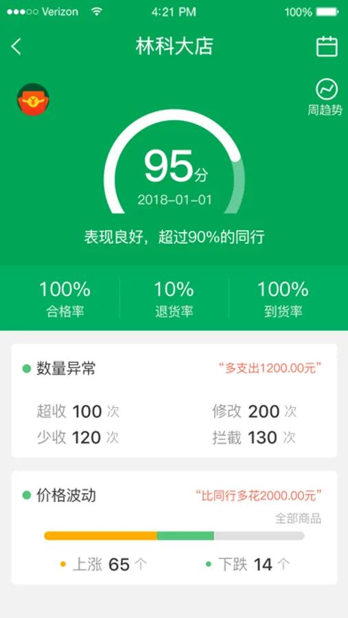 结合餐链APP,实时查看餐厅各门店每天的采购情况,采购趋势分析,按分类汇总;月度收货、退货统计,缺货、拒收情况统计;收货达标率分析,包括现场收货图片等,让管理者随时随地轻松掌握餐厅采购情况。