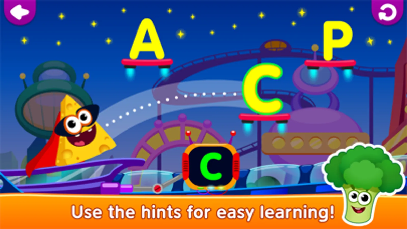 In our new super-app “Funny Food: Learning Letters!” we have put together the most fun and effective methods of learning.