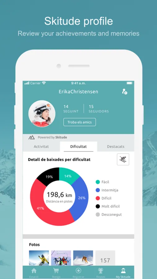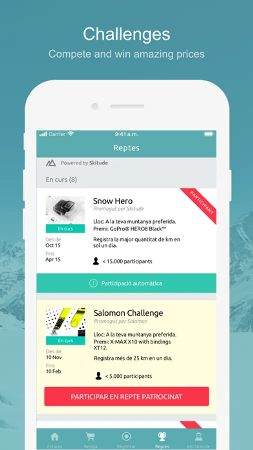 The App offers a range of features designed to optimize your experience before, during and after your trip. It’s very simple, plan your getaway and get real time updates on slope conditions. Set up your Skitude profile and track your activities on the slopes to get detailed stats about all your activities. And that’s not all, take part in challenges competing with the whole community, to be in with a chance of winning incredible prizes.