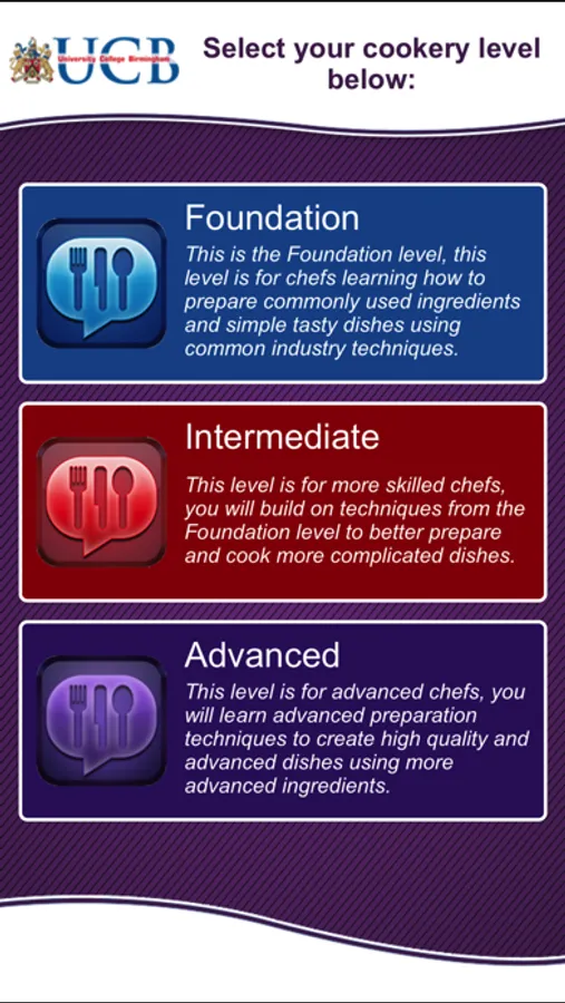 This app is designed to give users and UCB students cookery knowledge of classic techniques that are used throughout the industry, this app focuses on techniques and ingredients that you can apply to recipes within the app and within general cookery. This app has been packed with knowledge from the highly renowned chefs at UCB (University College Birmingham).