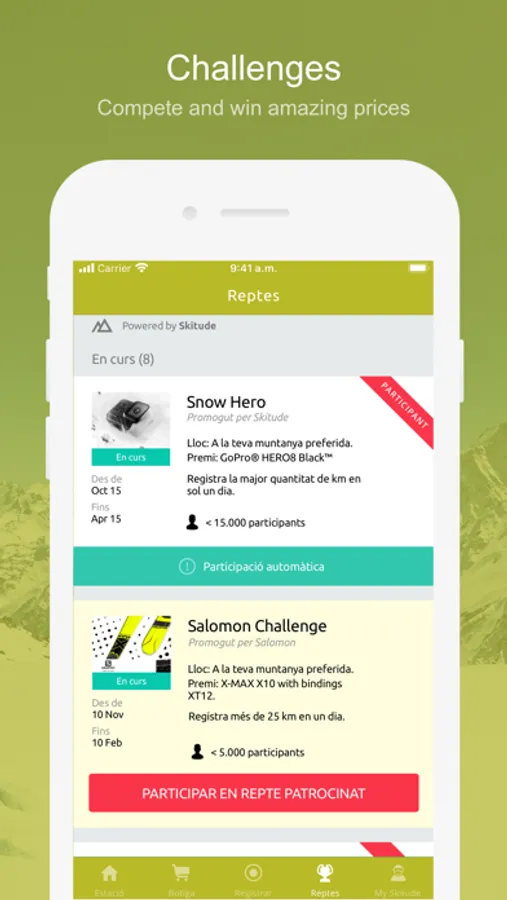 Set up your Skitude profile to track your activities using the GPS tracker. Find out where you are in the season's rankings and try to complete the challenges to be in with a chance of winning great prizes.