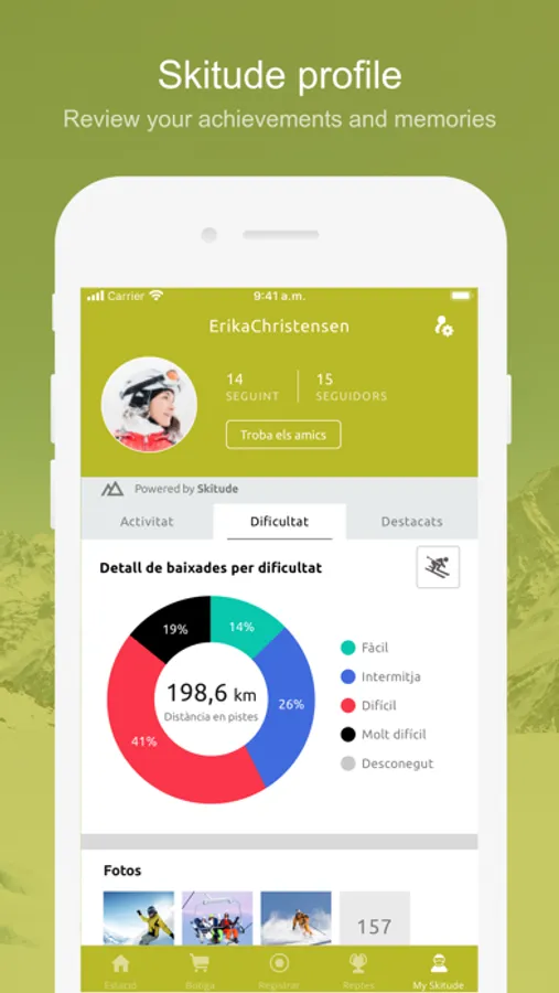 The App offers a range of features designed to optimize your experience before, during and after your trip. It’s very simple, plan your getaway and get real time updates on slope conditions. Set up your Skitude profile and track your activities on the slopes to get detailed stats about all your activities. And that’s not all, take part in challenges competing with the whole community, to be in with a chance of winning incredible prizes.