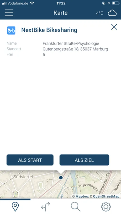 SiBike steht aktuell für die Städte Marburg, Würzburg, Reutlingen und Potsdam zur Verfügung. Es folgt die Integration weiterer Städte in diese App.