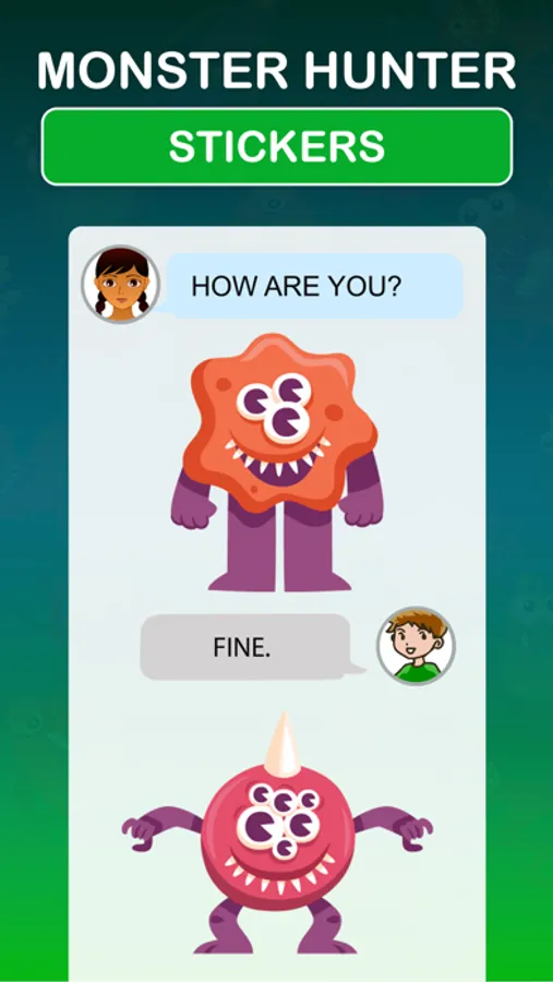 Express yourself with a collection of 90+ Monster stickers. Pack of monster emojis and stickers is sure to provide fun to friends, and beloved one. So use these pack via iMessage very quickly and make a lot of fun.