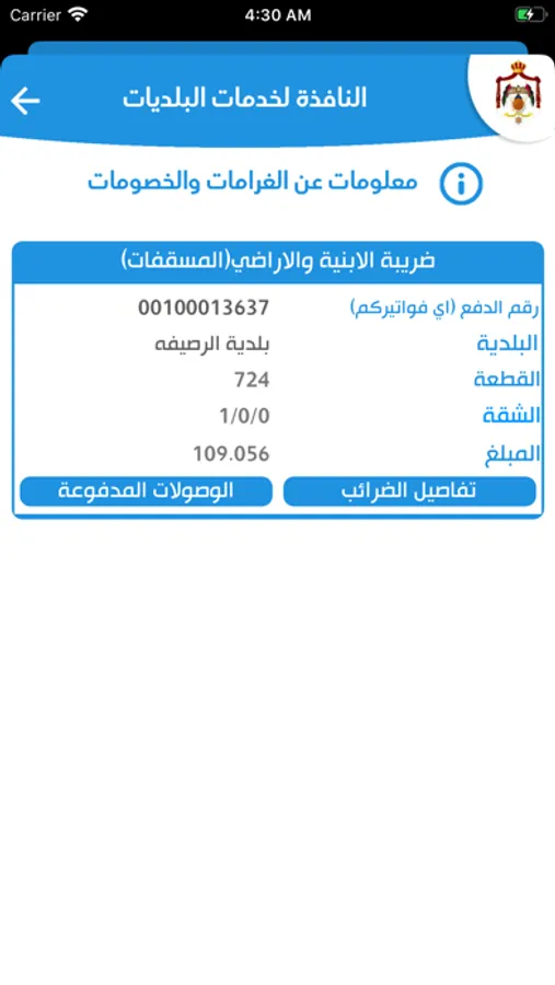 * وزارة البلديات / ضريبة الابنية والاراضي (المسقفات) او القطعة - بإستثناء امانة عمان الكبرى