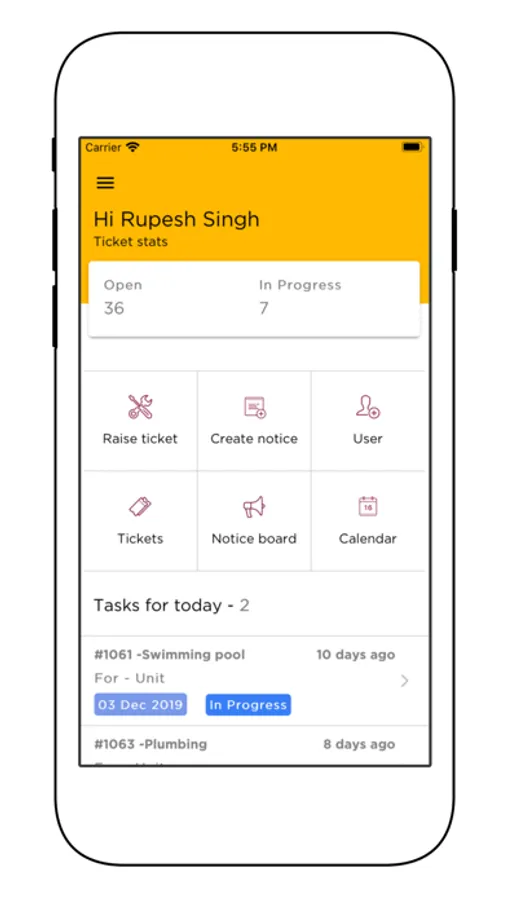 The app allows you to view and manage all tickets raised by residents and manage services provided by vendors in the building.
