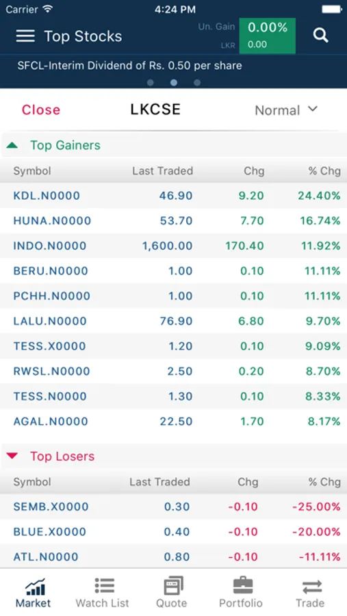 • Top Stock information, including the top gainers, losers and most-traded stocks
