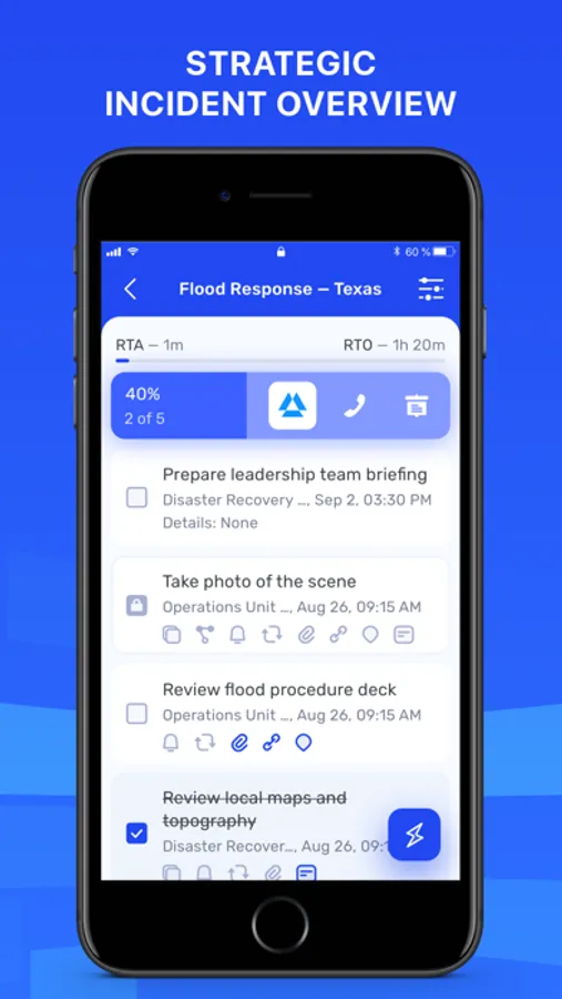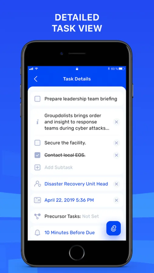 • Groupdolists pushes task lists and more instantly to response teams, regardless of their location or device—instantly synchronizing what needs to be done and by whom, as well as confirming completed tasks in chronological order.