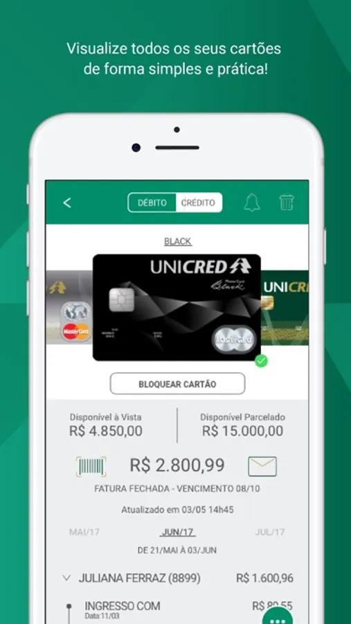 • Controle dos cartões adicionais: com o aplicativo os cartões adicionais também podem ser controlados de forma rápida e sem complicação.
