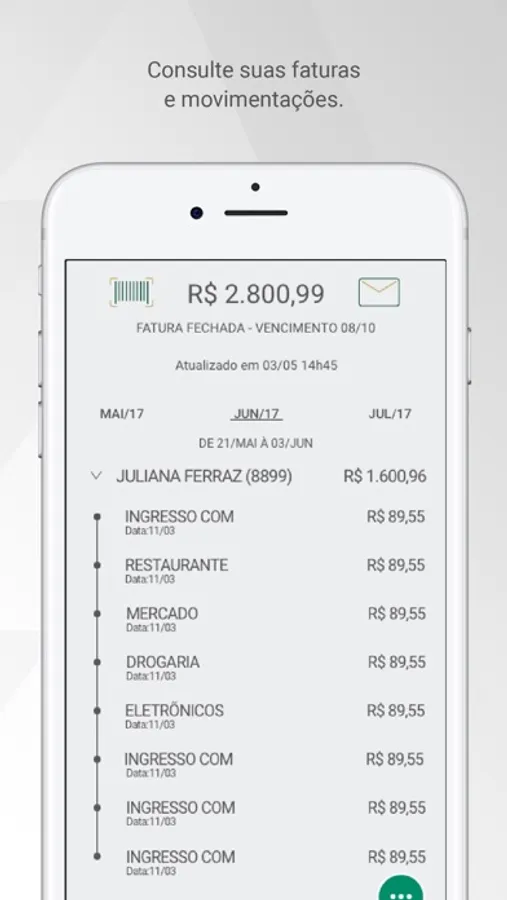 • Extrato detalhado: consulte os detalhes das suas compras e controle seus gastos.