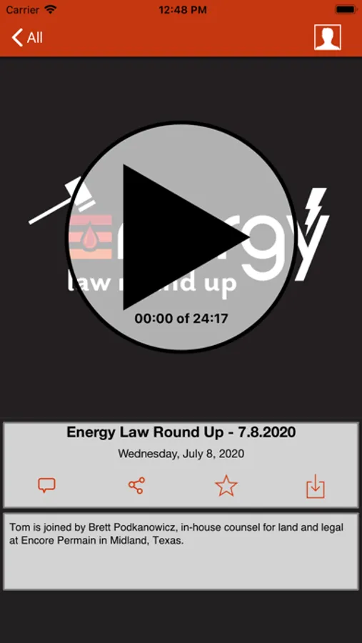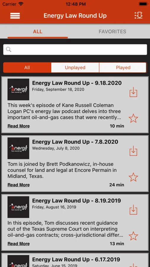 Our app is the easiest and most convenient way to listen to "Energy Law Round Up," a weekly podcast on legal news and developments in the energy industry from Texas and across the country, brought to you by business litigator and oil-and-gas trial lawyer, Tom Ciarlone.