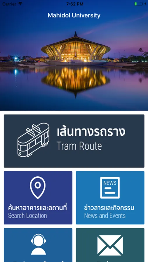 - ค้นหา และนำทางไปยังอาคาร และสถานที่ต่างๆในมหาวิทยาลัย